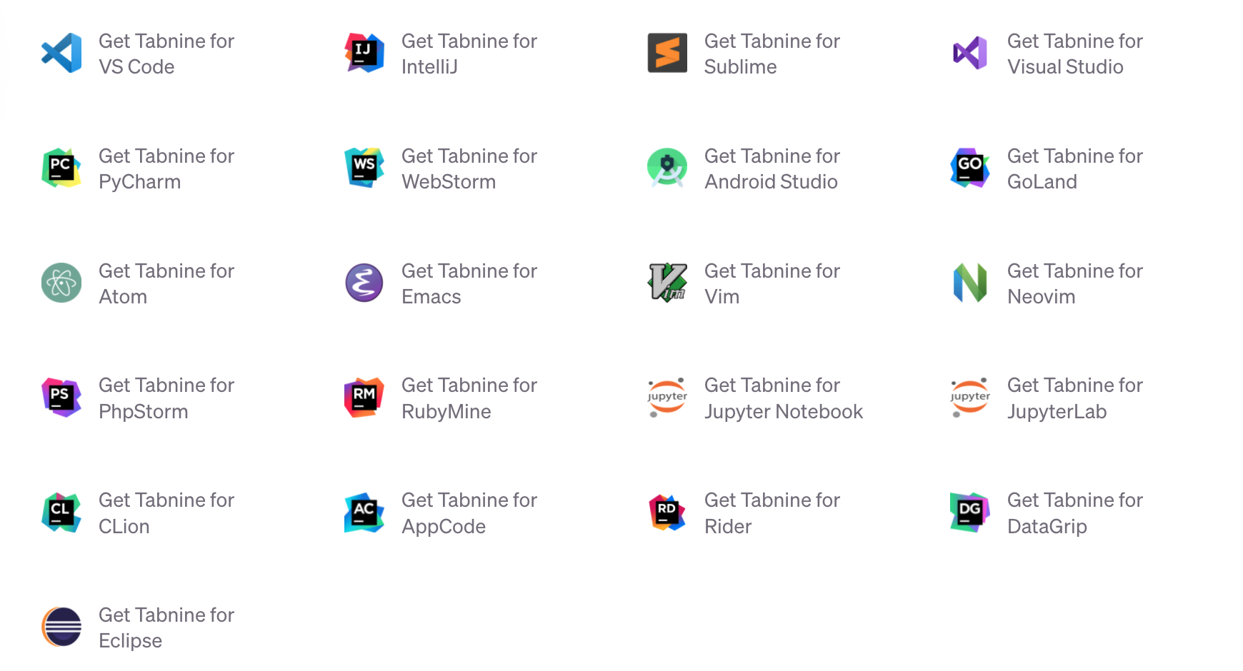 tabnine支持的编辑器应该是最全的,大部分IDE编辑器都支持